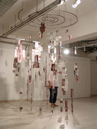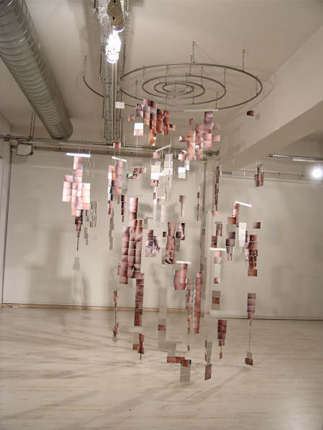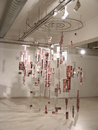 Kinetic sculpture-installation C-type photography, transparencies, aluminum, fishing-line 150x130x280cm, 2006