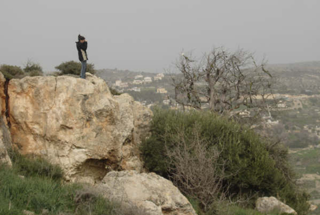 Semi dry tree, camouflaged strips of cloth (different shades of green). Outside the gallery space, the art work-camouflaged tree exists where it belongs in its proper environment. The visual result of the site-specific interven- tion allows various readings to the ‘view- er’. With a strong reference to the concept of a wishing tree, automatically the precise action such as tying a piece of cloth to a branch or other related actions like light- ing a candle or writing a wish on a peace of paper or even shaping a letter with a stone provoke ideas of hope, connection, positive expectations and involve further participation. .