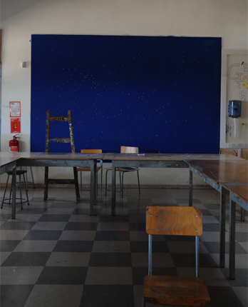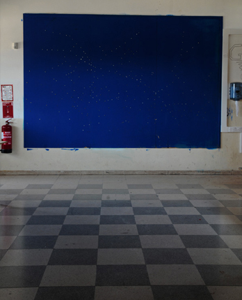 Photographic documentary/portrait. Summer 2012, a few days after the end of the school term. The Students are miss- ing class and the exam period has start- ed. The notice board is cleared up and the golden pins are transformed into stars. A depiction of an act in which de- fenses are activated; the transformation of a routine performance into an inter- esting perspective.